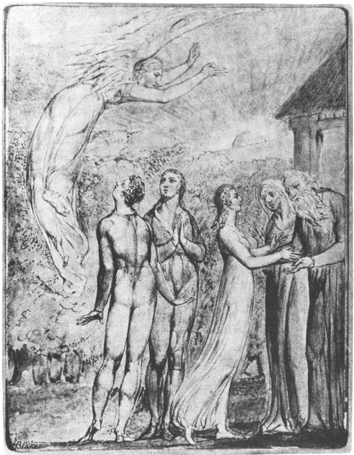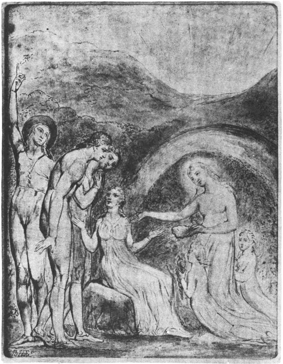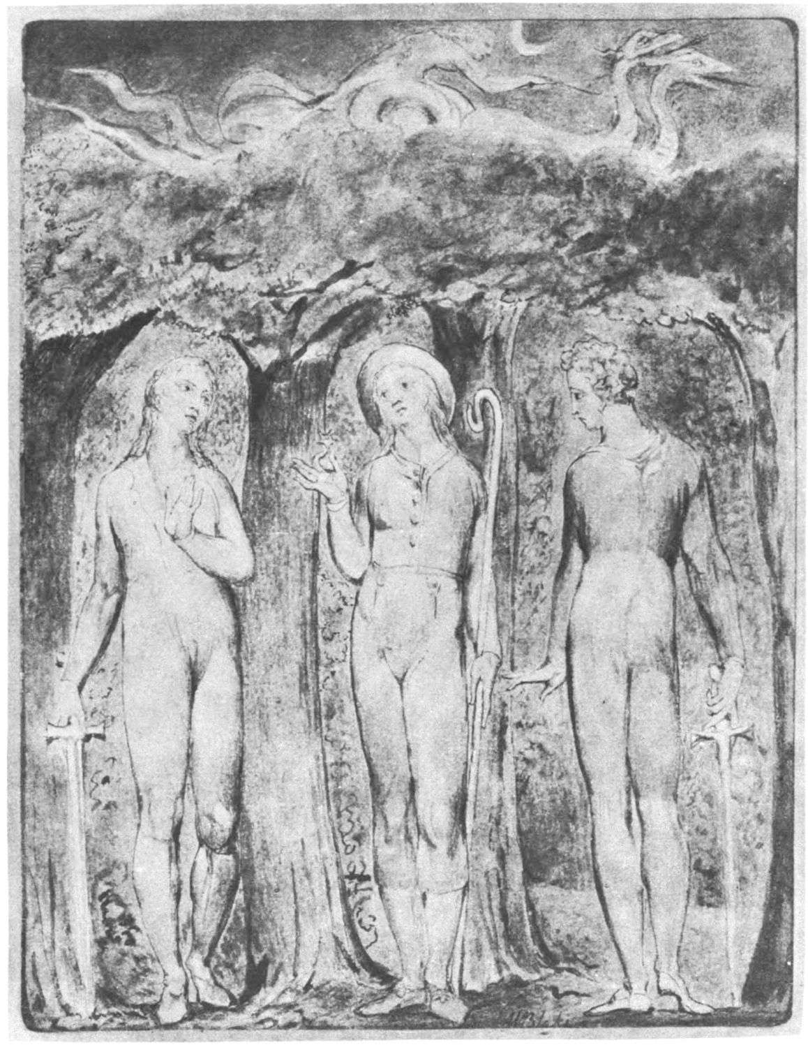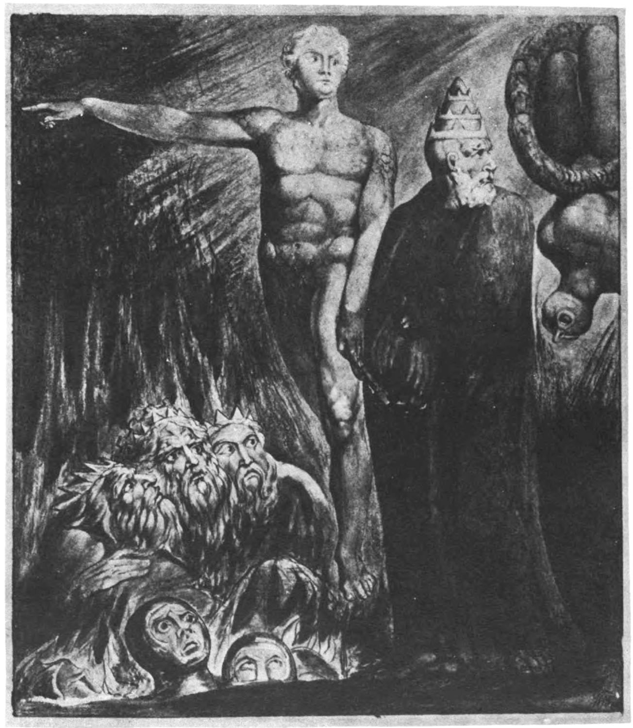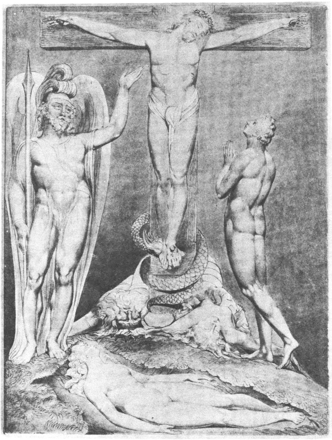 William Blake was born in London in 1757, and in 1827 he departed for “that undiscovered country” which all his life he had wished to see. Throughout the century which has passed since Blake’s death, much has been written about him. During the past few years a goodly number of our greatest men of letters have issued books on his life, art, and writings. Many of his writings have gone through several editions, but it was only within the past year that his complete works were issued, and that in a limited edition, which was soon off the market. While from time to time volumes of reproductions of a part of Blake’s masterly engravings and drawings have been issued, a large portion of his finest creations, including the “Paradise Lost” series, has not been accessible in reproductions.
